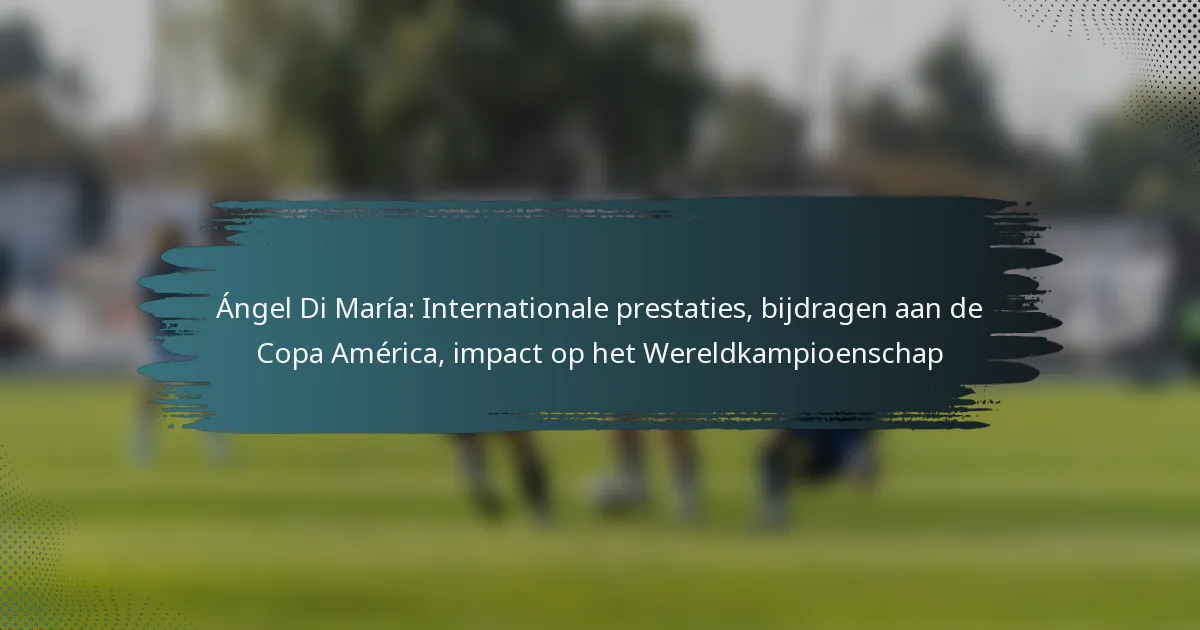 Ángel Di María heeft aanzienlijke bijdragen geleverd aan het Argentijnse nationale voetbalteam, met name door zijn deelname aan grote toernooien en individuele onderscheidingen. Zijn internationale prestaties omvatten het winnen van prestigieuze titels en het vestigen van mijlpalen in optredens, wat zijn impact op het succes van het team aantoont.